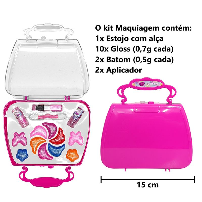 Estojo de Maquiagem Infantil com Gloss Batom Maletinha com Alça para Menina Lembrancinha de Festas - Caixa Display para Amostra