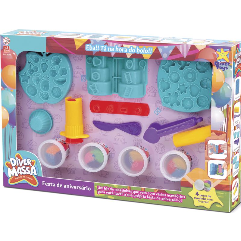 Transforme a brincadeira em uma verdadeira celebração com o kit Diver Massa Festa de Aniversário da Diver Toys! Este incrível conjunto tem tudo que você precisa para organizar uma festa de aniversário perfeita para você e seus amigos, estimulando a imaginação e a criatividade das crianças. O kit vem com quatro potinhos de massinha colorida, permitindo que os pequenos chefs preparem um banquete de delícias. Inclui uma variedade de acessórios, como uma forminha de bolo de três andares, forminhas de frutas, doces e biscoitos, um extrusor com quatro bicos diferentes, uma faca sem corte, uma forminha de doce, um pegador e um rolinho. Com esses itens, as crianças podem criar bolos, doces e outras guloseimas, montando um cardápio personalizado para sua festinha. O Diver Massa Festa de Aniversário não só proporciona horas de diversão, mas também ajuda a desenvolver a coordenação motora e a criatividade dos pequenos. Comece a diversão, transformando qualquer dia em um dia de festa cheio de cores e sabores imaginários!