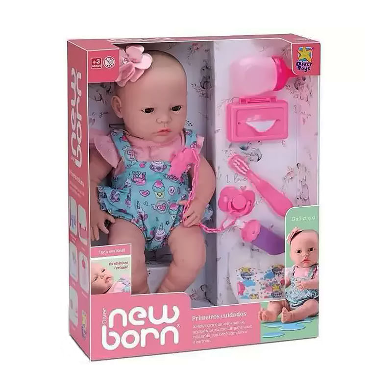 Primeiro cuidados boneca com fisionomia de bebê real toda em vinil macio e cheiroso abre e fecha os olhos quando movimenta ela para deitar
