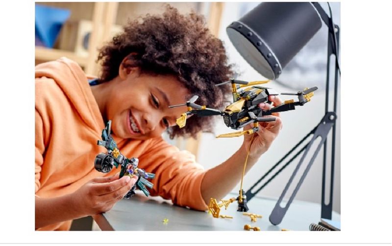 Os fãs da Marvel podem comemorar o lançamento de Homem-Aranha: Sem Caminho para Casa da Marvel Studios com o duelo de drones do Homem-Aranha (76195) da Marvel. Um vilão alado e um drone de tiro de garanhão As icônicas asas estendidas do abutre maligno fornecem um alvo tentador para a teia do Homem-Aranha. E, com o drone gigante de 4 rotores para levar o Homem-Aranha para o céu, não há como escapar para o vilão alado. Este playset versátil apresenta dois dos personagens mais populares da Marvel e está repleto de possibilidades de jogo – tanto em terra quanto no ar.