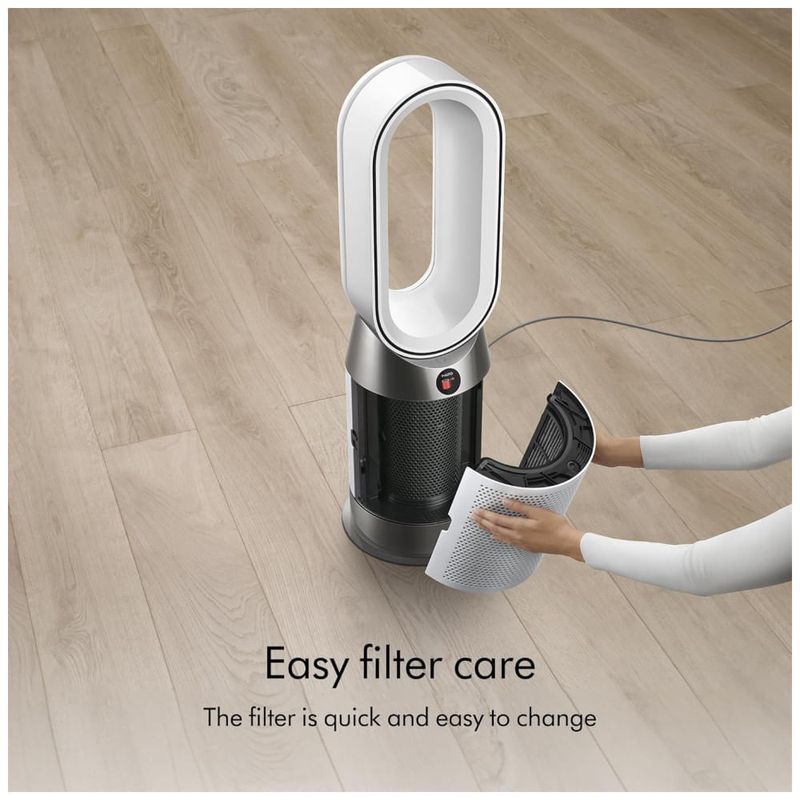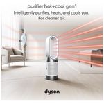 O Dyson Purifier HotCool Gen1 é um ventilador purificador que automaticamente detecta, captura e retém poluentes para purificar todo o ambiente. Ele aquece ou resfria o ar, enquanto remove 99,97% das partículas tão pequenas quanto 0,3 mícrons. Testado de acordo com os padrões internos da Dyson para projeção de ar em todo o ambiente DTM108 e cobertura de purificação TM003711. Desafio de partículas com óleo DEHS especificado em EN1822 dentro de uma câmara especificada em ASTM F3150. Testado no Modo Máx para eficiência de todo o aparelho acima de 99,95%. Taxas de captura de gases variam. Testado de acordo com ISO 29463. A tecnologia Air Multiplier circula o ar purificado por todo o ambiente. Purificador para o ano inteiro. Aquece no inverno, refresca no verão. Controle remoto curvo e magnetizado se armazena de forma organizada na máquina. Não compatível com aplicativos. Oscila até 350°. Programado para desligar após intervalos pré-definidos de 1, 2, 4 e 8 horas. Totalmente selado no padrão HEPA. Então o que entra, fica dentro. Modo Noturno monitora e purifica utilizando as configurações mais silenciosas, com display discreto.