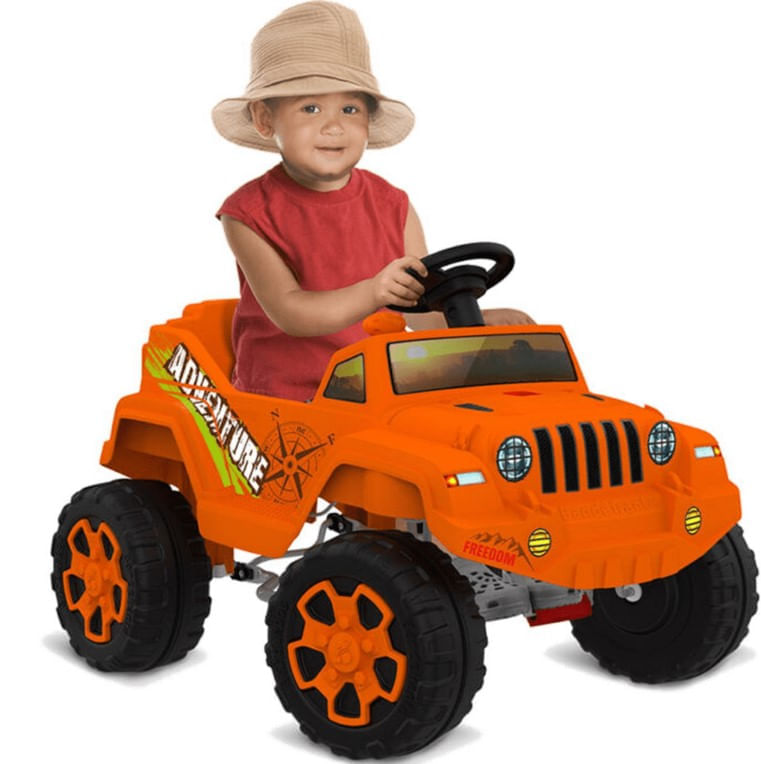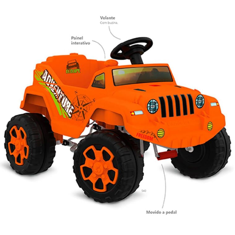 A criançada vai delirar ao se deparar com esse “jipão” de cor laranja! O Ecojipe Adventure da Brinquedos Bandeirante poderá ser utilizado por crianças a partir dos 2 anos de idade para que ela se aventure e sinta a emoção das pedaladas com segurança, além de estimular a prática das atividades físicas.