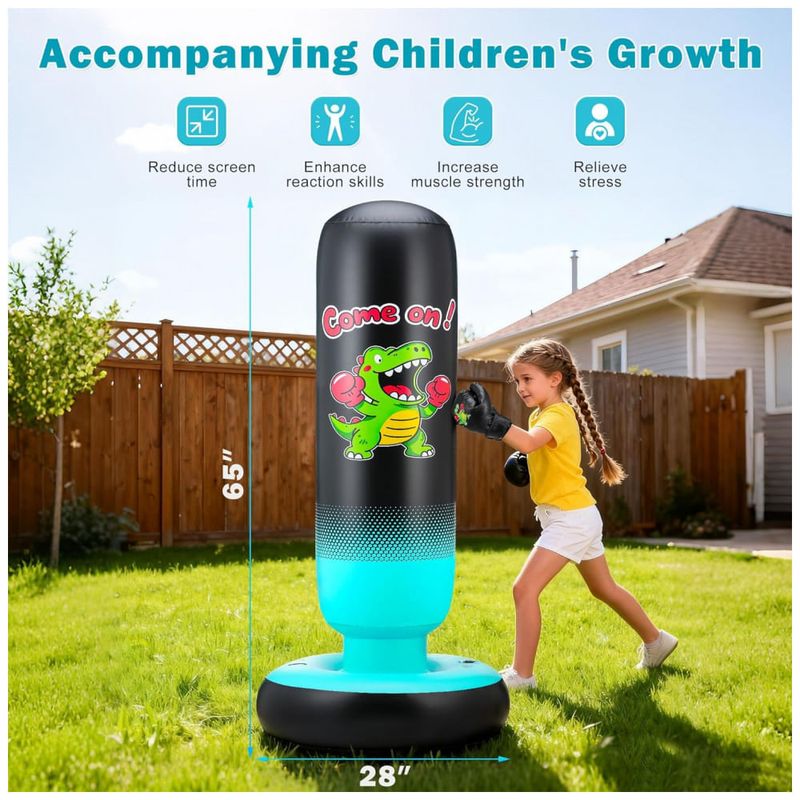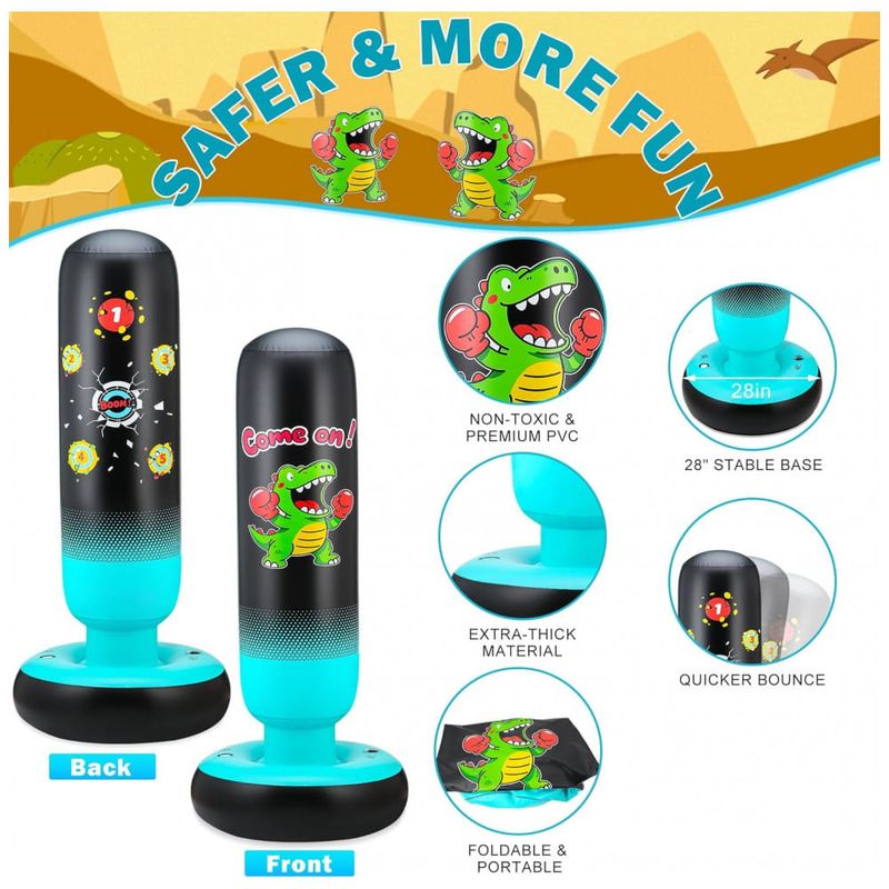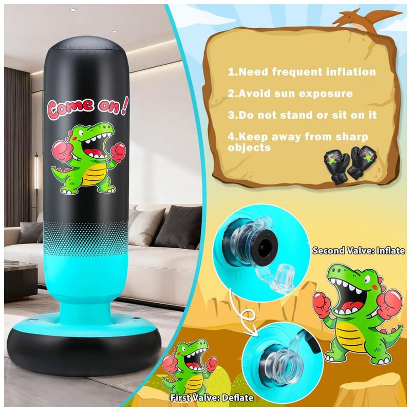 Descubra o Saco de Pancadas Inflável EIVONDA, especialmente projetado para crianças de 3 a 12 anos, que traz diversão e desenvolvimento motor em um só produto! Com impressionantes 165 cm de altura e estampa de dinossauro favorita dos pequenos, este saco oferece uma superfície dupla face com alvo de pancadas para estimular o interesse e a brincadeira. Fabricado em PVC grosso e resistente, passou por mais de 10.000 testes para garantir durabilidade, mantendo a superfície lisa e sem vazamentos mesmo após uso intenso. Ao socar e chutar este saco, as crianças aprimoram a coordenação motora, equilíbrio e reflexos, em um ambiente seguro, divertido e sem competitividade, favorecendo o desenvolvimento físico e mental. Além disso, seu design inflável e compacto proporciona economia de espaço: basta esvaziar para guardar ou transportar facilmente, ideal para uso em ambientes internos e externos. O uso é simples: encha a base com 10 litros de água para estabilidade, infle as camadas de ar na sequência indicada e divirta-se! Cuidados especiais incluem evitar exposição prolongada ao sol, não sentar sobre o saco e evitar arrastá-lo no chão para preservar sua integridade. Um presente perfeito para aniversários, que une atividade física e entretenimento com a qualidade EIVONDA.