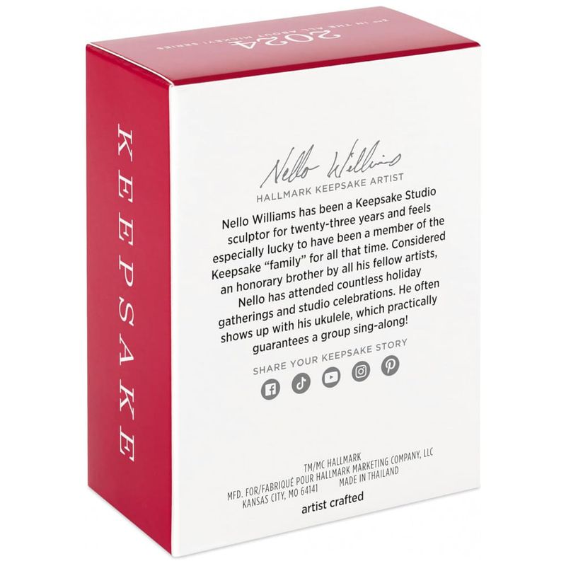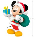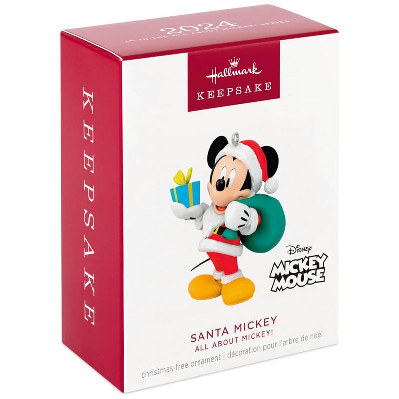 Entre no espírito natalino com este enfeite Hallmark Keepsake da série All About Mickey!, apresentando Mickey Mouse vestido como Papai Noel, segurando um saco de brinquedos e um presente colorido. Esta é a terceira peça da série que celebra Mickey em diferentes funções e passatempos a cada ano. Com detalhamento artístico excepcional feito pelo artista Nello Williams, o ornamento em plástico é perfeito para colecionadores e fãs Disney que desejam preservar memórias, comemorar momentos especiais e expressar seu amor por Mickey durante as festas.
