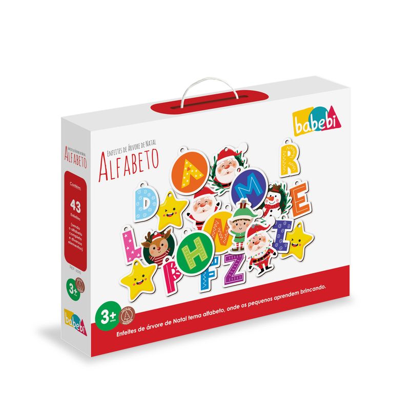 Produzido em madeira reflorestada, resistente e segura. Seus diferenciais:Contém todas as letras do alfabeto em enfeites natalinos.