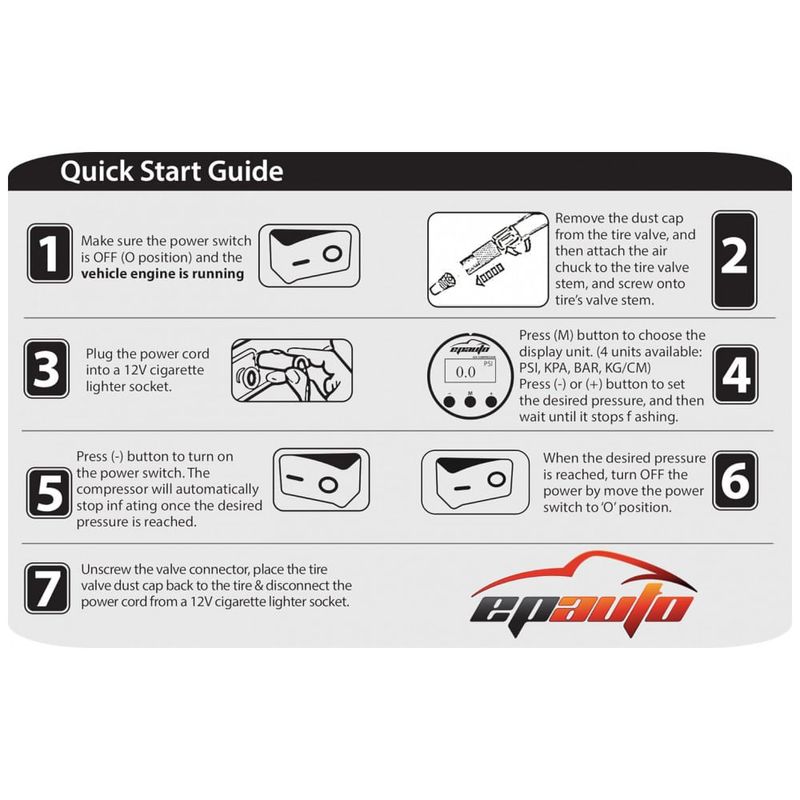 Impedir o excesso de inflação Desligue automaticamente ao atingir a pressão do pneu desejada. A proteção contra superaquecimento desliga automaticamente durante a sobrecarga. Patente USPTO NO D875.788