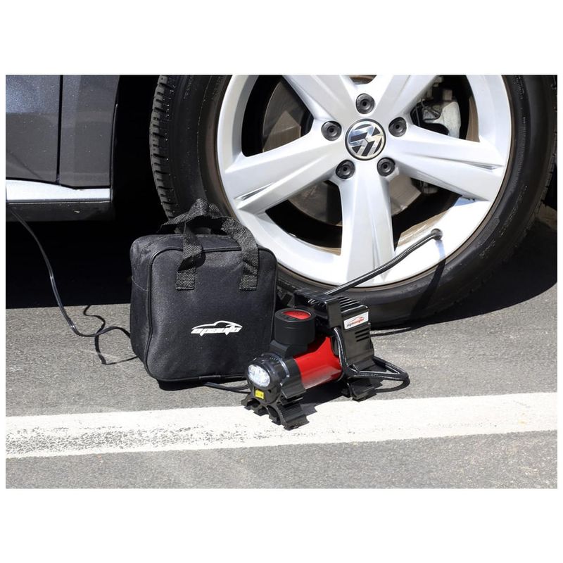 Vários usos Encha pneus em carros, bicicletas, sedan e SUV de médio porte. Tamanho do motor abaixo de 3,5 litros O conector de válvula universal para válvula Schrader está pronto para uso. Adaptadores adicionais incluem valor de agulhas para basquete, bolas, adaptadores de cone curto , cone longo para caiaque inflável, acessórios de piscina, etc