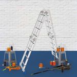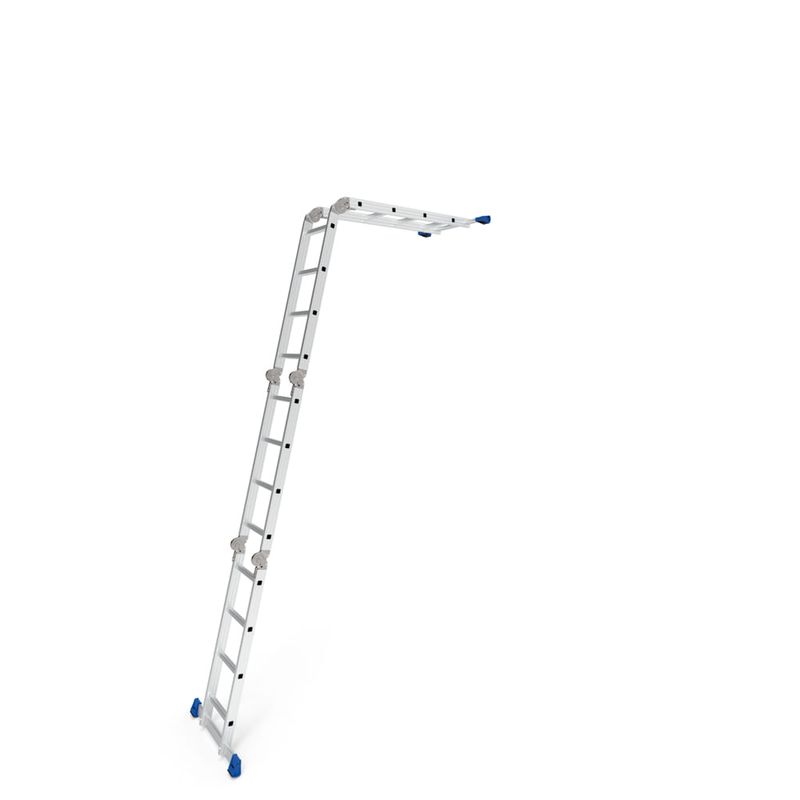 A Escada Multifuncional 4x4 da Mor é surpreendente e oferece diversas formas de utilização! Para uso profissional e doméstico, possui estrutura super resistente em alumínio, dobradiças em aço com exclusiva trava de segurança e pés emborrachados que aumentam a aderência e não danificam o piso. Com 8 posições de regulagem, oferece estabilidade e segurança total durante seu uso. Possui 4 partes de 4 degraus, alcançando a altura de 4,61m quando totalmente estendida. Prática, em menos de um minuto você pode trocar a posição da escada de acordo com sua necessidade. Por ser totalmente dobrável, ao fechá-la seu volume diminui ocupando pouquíssimo espaço, facilitando seu transporte e armazenamento em qualquer lugar. Fabricada de acordo a norma europeia EM-131 a Escada Multifuncional garante a certeza de um excelente produto. Ela suporta até 150 Kg, tem catracas com excelente qualidade, travamento automático na extensão e degraus com ranhuras em todos os lados conferindo ainda mais segurança durante a sua utilização.Com 3 anos de garantia, é a versatilidade que você precisava para alcançar as superfícies mais altas e lugares de difícil acesso com muita rapidez e agilidade.