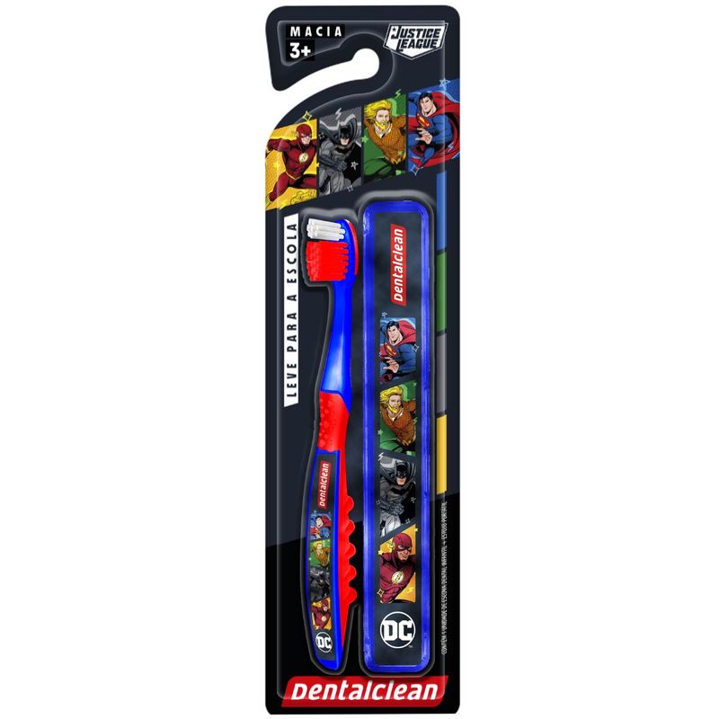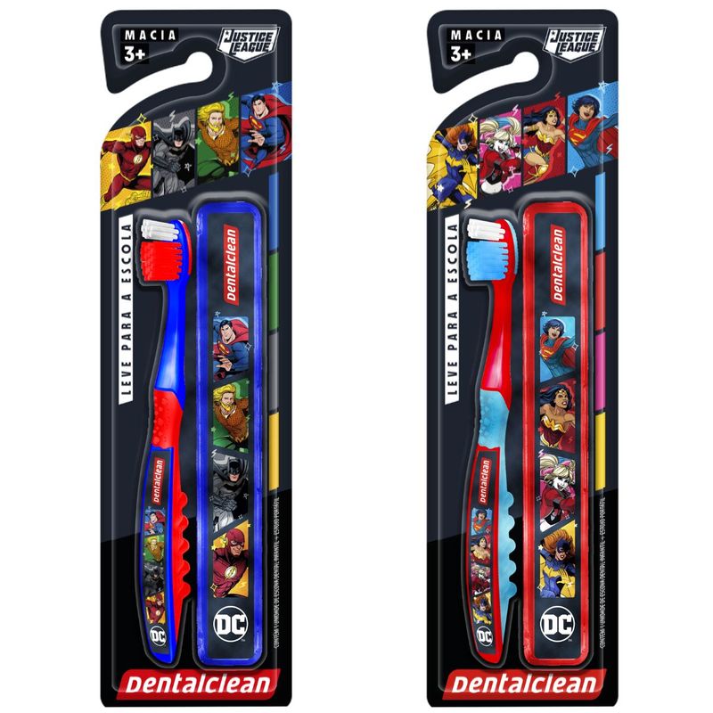 KIT ESCOVA DE DENTE MACIA + ESTOJO HERÓIS LIGA DA JUSTIÇA - DENTALCLEAN