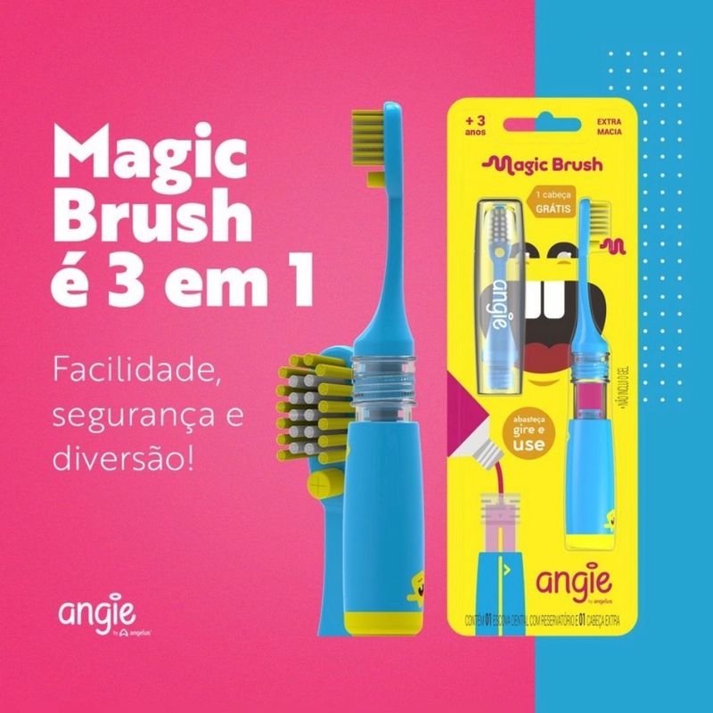 ESCOVA INFANTIL MAGIC BRUSH EXTRA MACIA AZUL ANGIE BY ANGELUS - 3 ANOS+ e GEL DENTAL COM FLÚOR BUBBLE GUM 50GR - FISHER PRICE