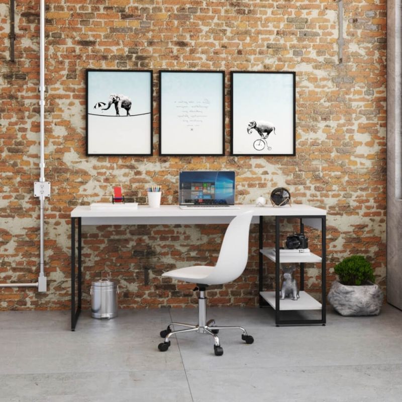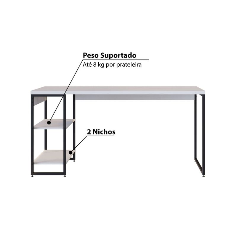 Escrivaninha com Estante Industrial com 2 Nichos - Branco/Preto