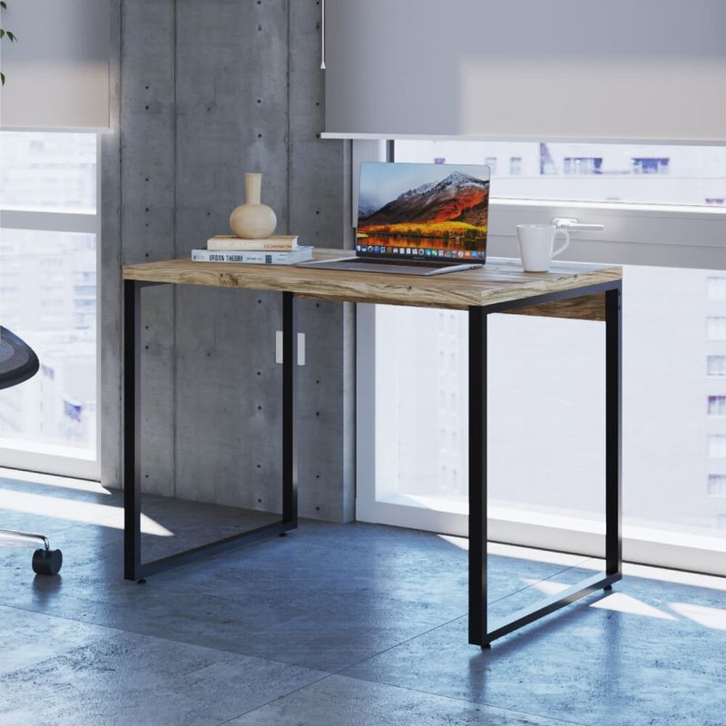A Escrivaninha se destaca por seu estilo industrial que se inspira nas instalações de fábricas das grandes cidades. Conta com tampo em MDP, perfeita para deixar seu escritório com designer moderno e dando ainda mais personalidade ao seu espaço. Os pés são em aço. Para um ambiente moderno é necessário escolher móveis arrojados, únicos, que irão impressionar logo à primeira vista.