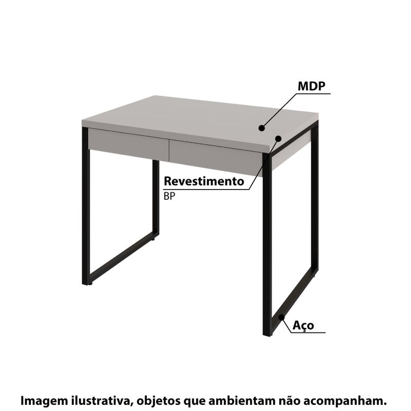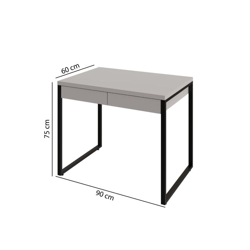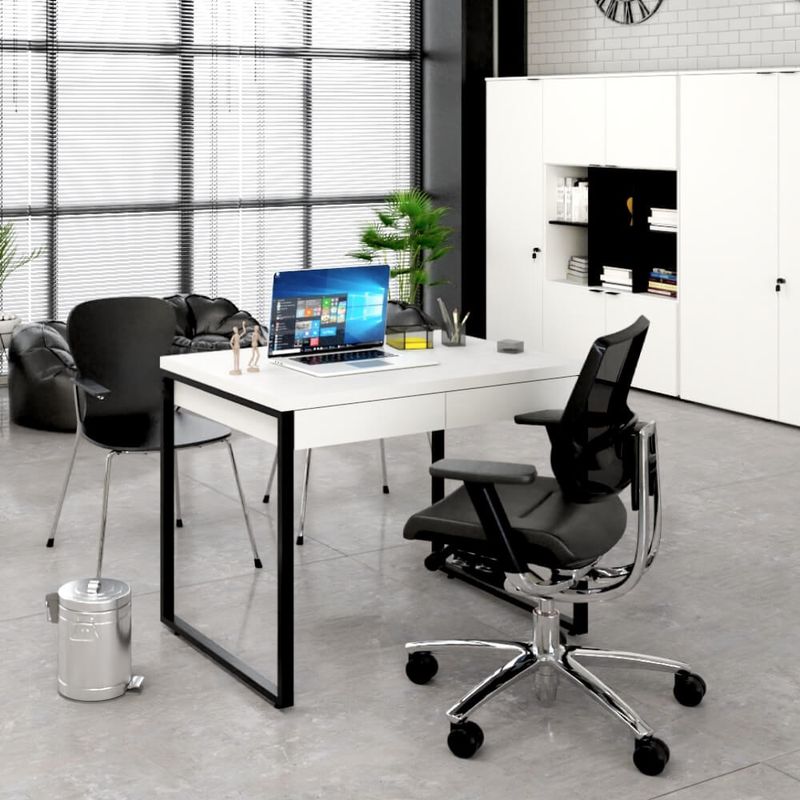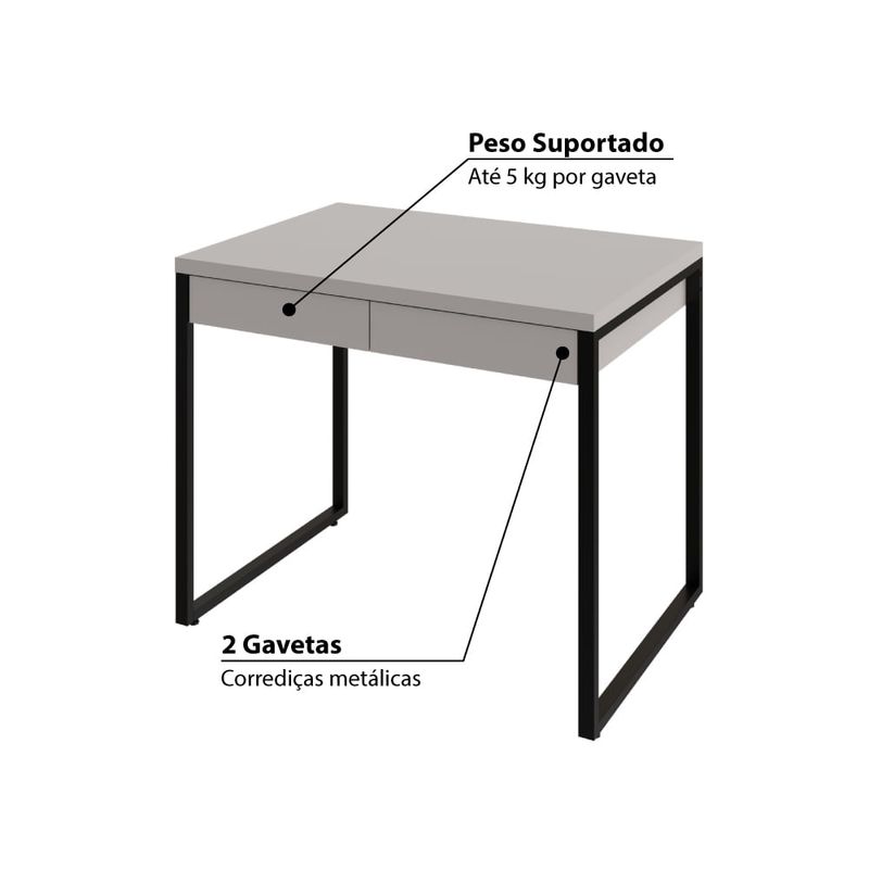 Escrivaninha Industrial Kuadra com 2 Gavetas 90 cm - Branco/Preto