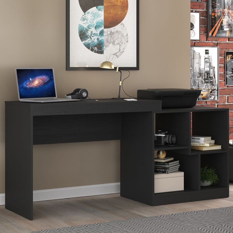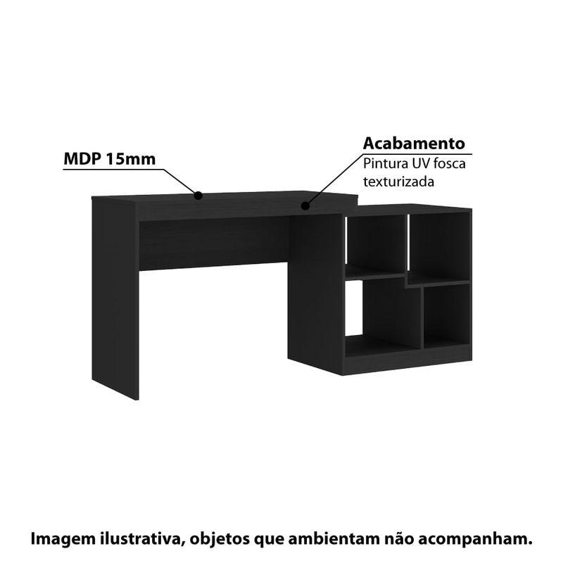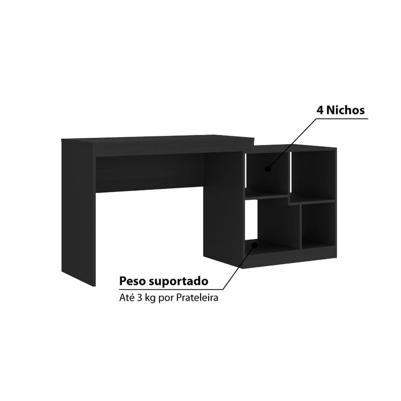 A Escrivaninha HO2904 é moderna e de muita beleza! Uma forma elegante de trazer funcionalidade, praticidade e muito bom gosto ao quarto ou escritório. Despojada, mas de fácil combinação aos diferentes estilos de decoração. Com 4 nichos para você expor a impressora, livros, revistas ou objetos de decoração. Sua montagem é versátil, você escolhe a disposição da parte dos nichos, sendo uma extensão do tampo em seu comprimento, ou como um apoio lateral. Seu tampo ficará com 2 níveis, perfeito para o notebook e ainda os acessórios de trabalho e estudo. Uma combinação perfeita de cores, delicada, charmosa, traz leveza ao ambiente. De acabamento excelente, toda em MDP, pintura UV fosca texturizada.