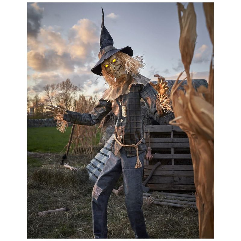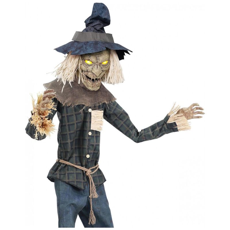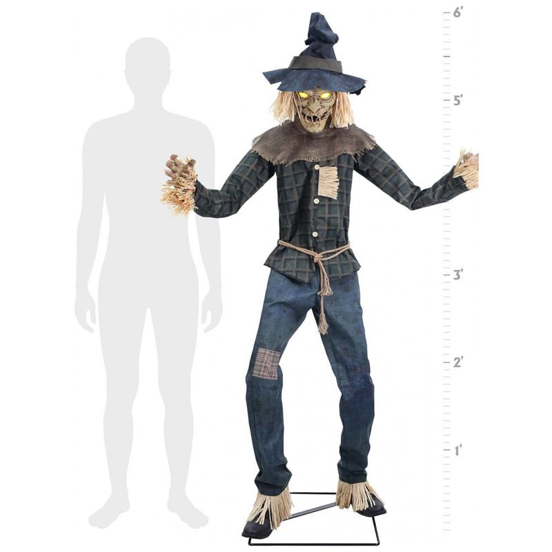 Naquela época, Strawman era um fazendeiro gentil que amava o ar livre e cuidava de suas colheitas. Então a fábrica de produtos químicos explodiu nas proximidades, contaminando os campos. Agora, em vez de proteger as terras que ele cultivou, ele se alimenta da destruição e está sempre à espreita montando dilhas para os desavisados, afundando ansiosamente suas ferramentas afiadas em sua carne macia e enchendo a boca cheia de palha antes que eles possam gritar de terror. Se perca no milharal e o Strawman Animatronico certamente mostrará o caminho ... para a sua morte Apresentando servomotores realistas dentro que alimentam seus movimentos aterrorizantes, juntamente com uma luz assustadora nos olhos que olham profundamente em sua alma, o Strawman Animatronico é indispensável para qualquer exibição animatrônica neste Halloween.