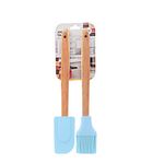 KIT COM ESPATULA E PINCEL DE SILICONE E MADEIRA PARA COZINHA 2 PEÇAS