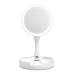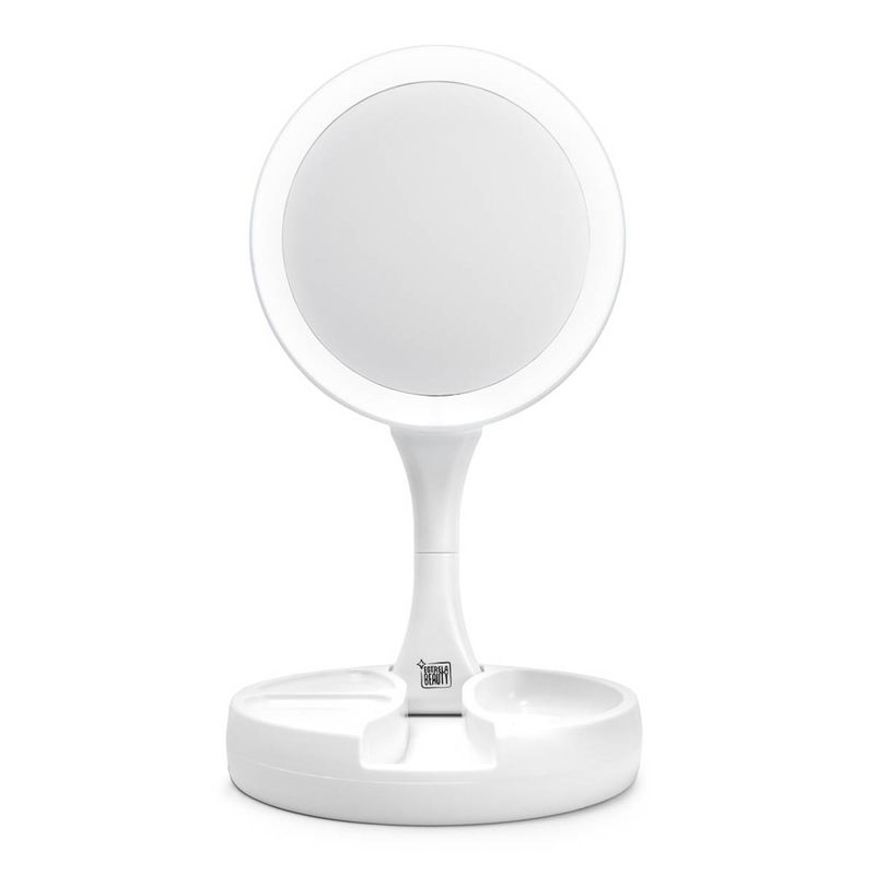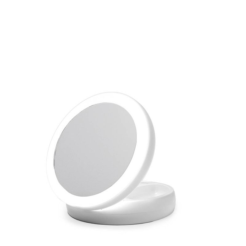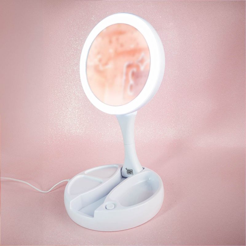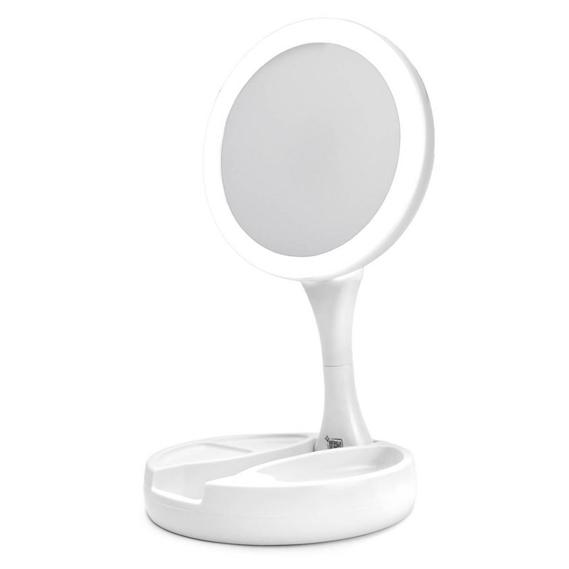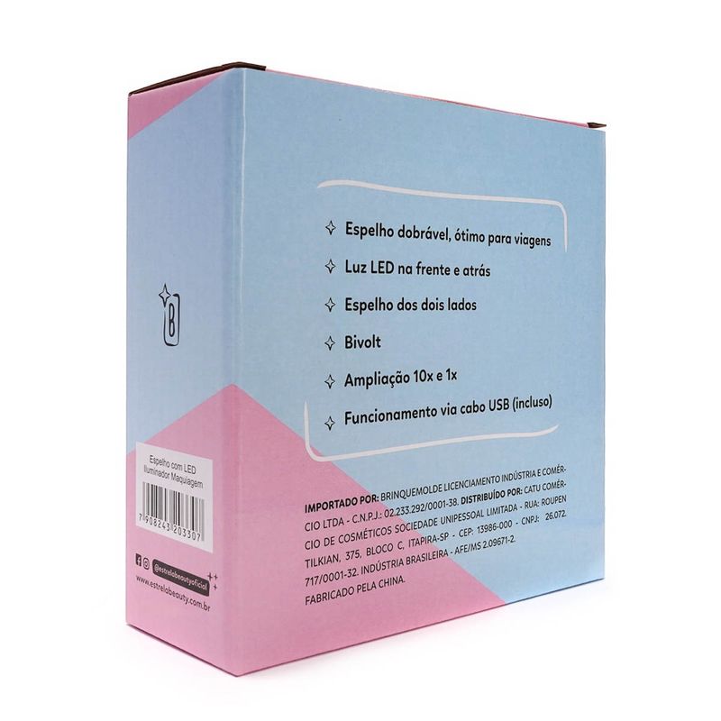 O espelho é feito para você que mesmo na correria cotidiana, sempre arruma um tempinho para retocar a maquiagem ou arrumar o cabelo, é portátil, contem leds melhor visualização.Por ser dobrável, leve e compacto, ocupa pouco espaço, sendo ideal para guardar na bolsa, na mala de viagem e até mesmo em casa.Este espelho de maquiagem é iluminado com leds, sendo muito prático, basta pressionar um botão na parte inferior do suporte, que ligará as luzes LED que são super brilhantes em ambos os lados para iluminação perfeita da imagem.Também possui os dois lados funcionais (frente e verso), sendo de um lado com ampliação de 1x para maquiagem geral e do outro lado apresenta grande ampliação 10x para realização de trabalhos detalhados.