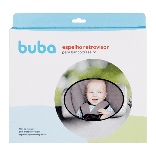 O espelho retrovisor para banco traseiro da buba é ideal para quando a cadeirinha está virada de costas para o motorista, pois possibilita que o condutor possa ver o bebê sem precisar virar-se e desviar a atenção do trânsito. A instalação é feita no encosto do banco traseiro através de alças ajustáveis e clipe para fechar. O espelho é convexo, ampliando o campo de visão e à prova de quebra para evitar acidentes. Os passeios serão mais seguros e tranquilos para toda a família.