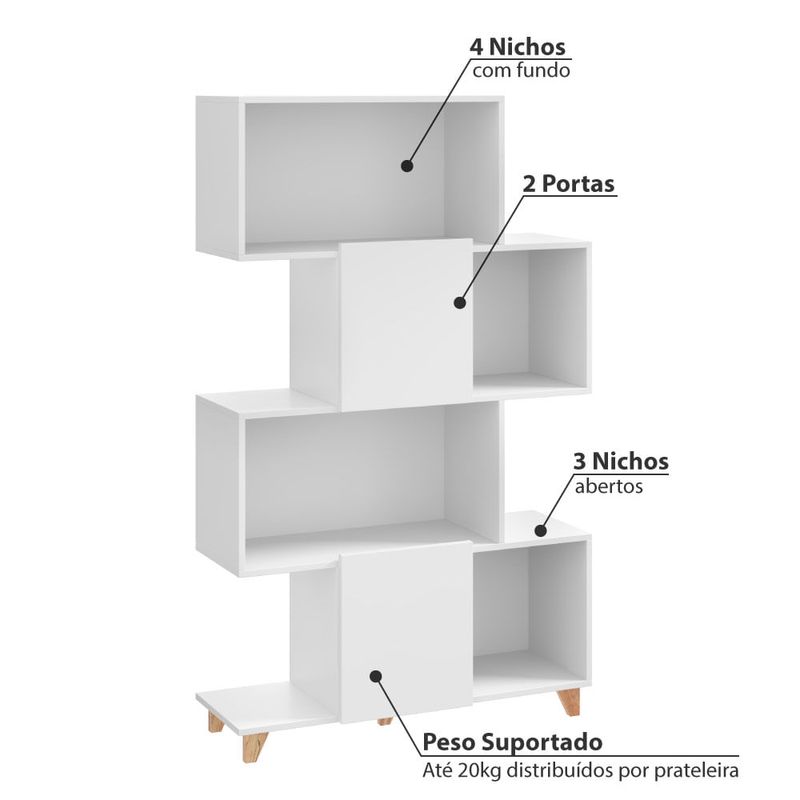 Estante Aurora com 2 Portas e 4 Nichos - Branco