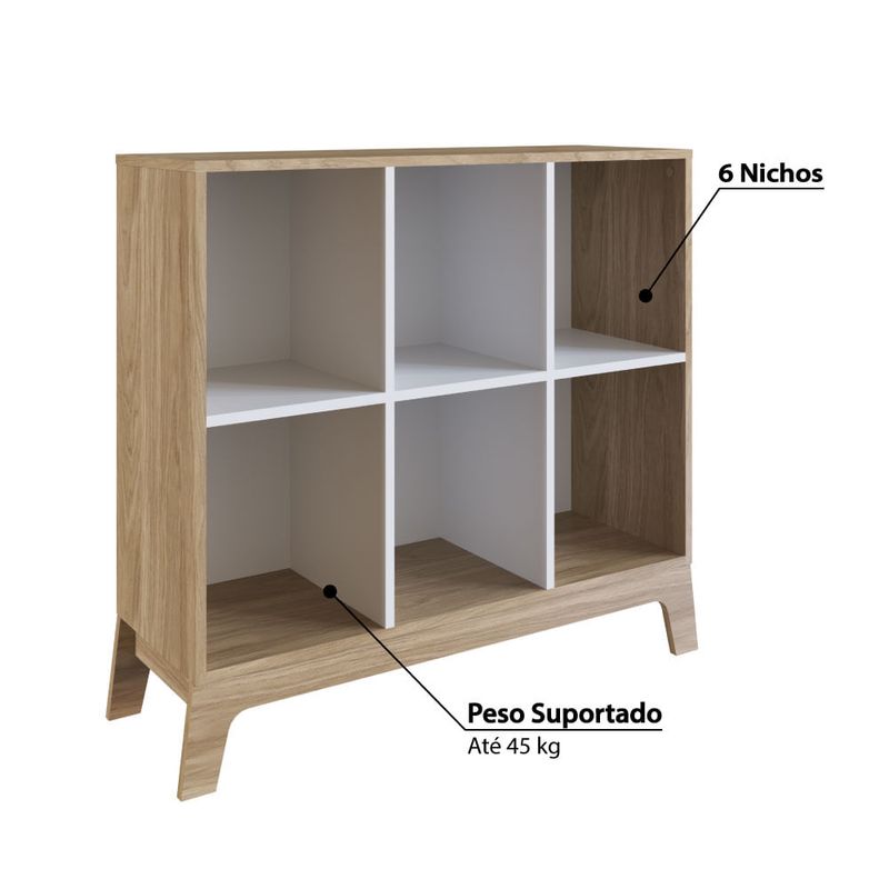Estante Infantil Favo de Mel com 6 Nichos - Natural/Branco