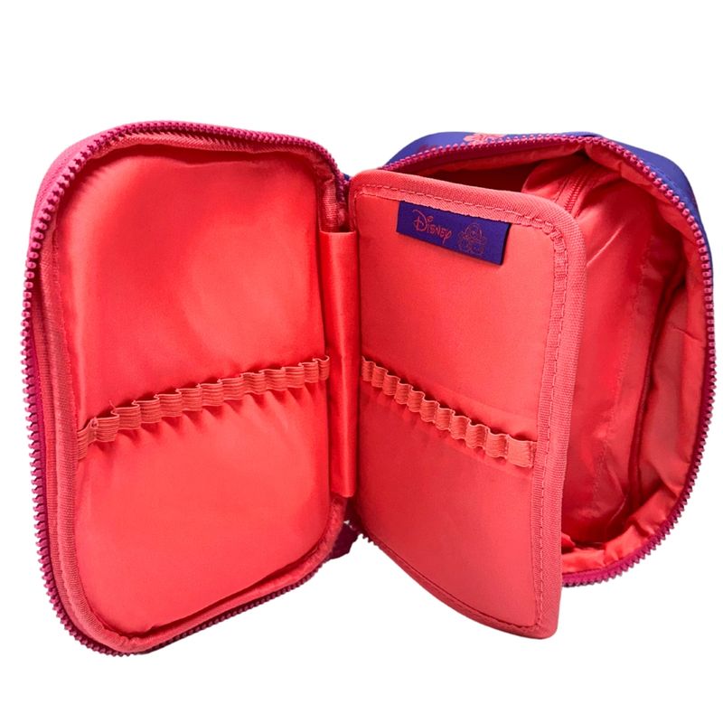 - Possui compartimento interno com zíper separado para miudezas, elásticos para prender 36 lápis e amplo espaço para outros lápis e material diverso.