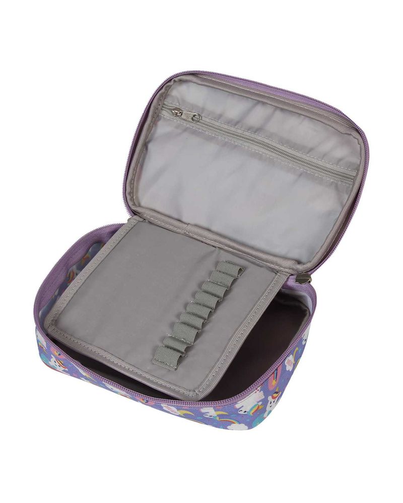 Estojo com capacidae de 100 canetas, divisórias com elástico, bolso interno com zíper, você também pode armazenar outros artigos de papelaria, como notas, tesouras, fitas etc. 16 cm x 24 cm x 7,5 cm