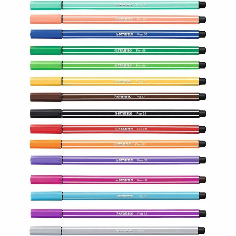 Se você procura inúmeras opções de cor e alta qualidade, a STABILO Pen68 vai ser a sua nova melhor amiga para colorir. Foi esta caneta de feltro que deu à STABILO sua reputação de qualidade premium alemã imbatível desde 1966. Este produto realmente irá surpreender você com seu alto desempenho – pode ficar até 24 horas destampada, tinta à base de água inodora, alto brilho e luminosidade. Comece a colorir agora com de 41 cores mais 6 tons fluorescentes.