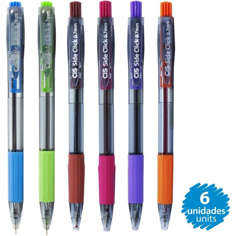 Caneta esferográfica cis side click 0.7 mm - estojo com 6 unidades, cores sortidas. Caneta esferográfica com cores vibrantes. CIS é uma empresa global que fornece canetas retrátis. CIS é um parceiro confiável, você pode confiar.