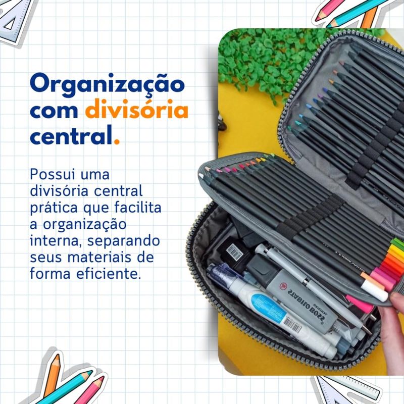 LIVROS E PAPELARIAMATERIAIS ESCOLARESESTOJOSEstojo Escolar Box Grande Infantil Organizador Para Lapis Feminino Masculino Nylon Com Divisoria Necessarie Ziper Resistente PRETO