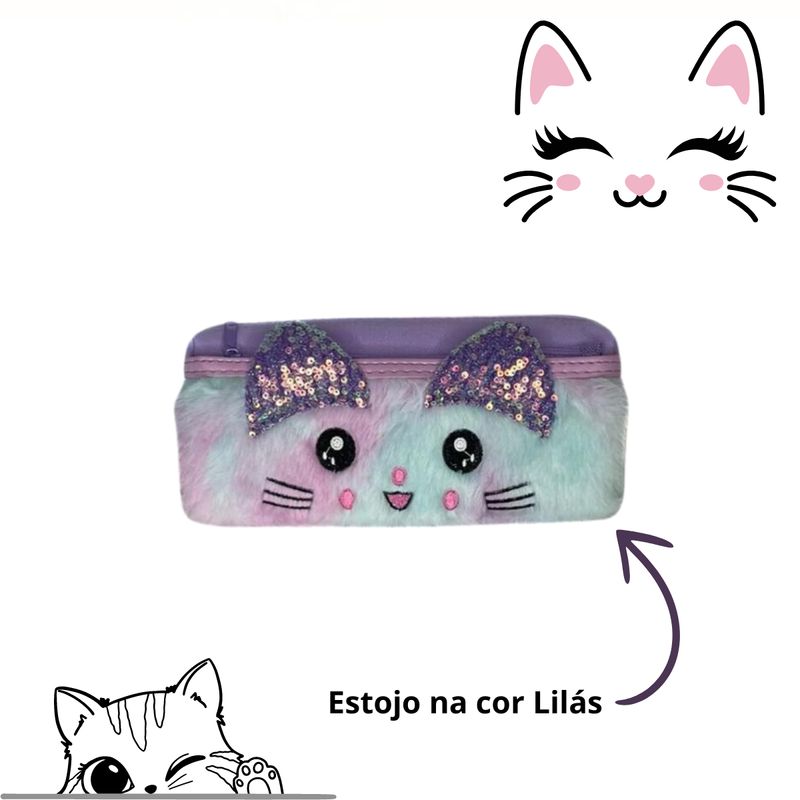 Estojo Escolar Miau Lilás Ff9022 Gatinha - Fofy