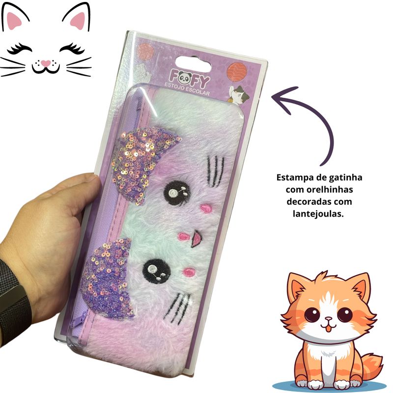 Este lindo estojo da linha Fofy é perfeito para quem adora itens fofos e funcionais! Com um design encantador de gatinha, ele se destaca por suas orelhinhas de gatinho com lantejoulas, dando um toque especial e brilhante. Na cor lilás suave, o Estojo Miau oferece espaço ideal para armazenar seus lápis, canetas e outros materiais escolares com organização e estilo. Feito com materiais de alta qualidade, é resistente e prático para o uso diário, com um fechamento por zíper que garante segurança.