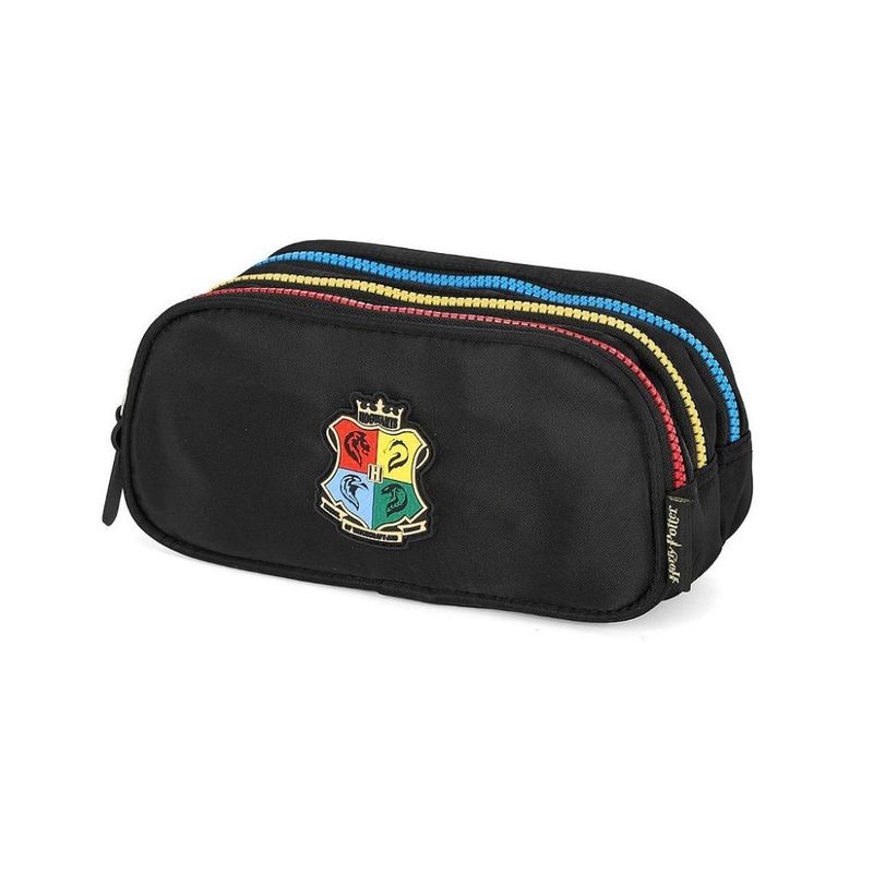 Estojo Escolar Triplo Luxcel Harry Potter Hogwarts Logo Preto
