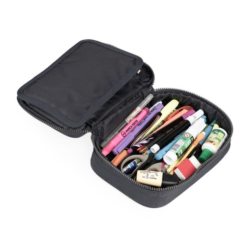 -Espaço Inteligente: Com compartimentos estrategicamente projetados, nosso estojo escolar acomoda itens como lápis, canetas, borrachas e outros objetos de forma organizada, tornando-o ideal para suas necessidades acadêmicas e profissionais.