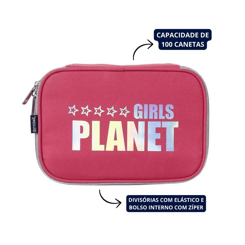 Estojo Infantil Planet Girls Soft Luxo com capacidade para 100 canetas Logo holográfico