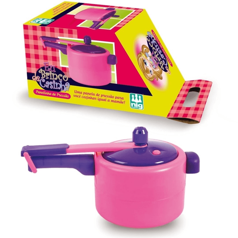 As meninas ganharam uma panelinha de pressão igual a da mamãe. Tampa de encaixar e botãozinho de pressão. A comidinha vai ficar mais saborosa e a casinha completa. Uma panela de pressão para você cozinhar igual a mamãe. Novo Brinquedo Panelinha de Pressão Infantil Rosa da Nig Brinquedos 0607. Imagens meramente ilustrativas.