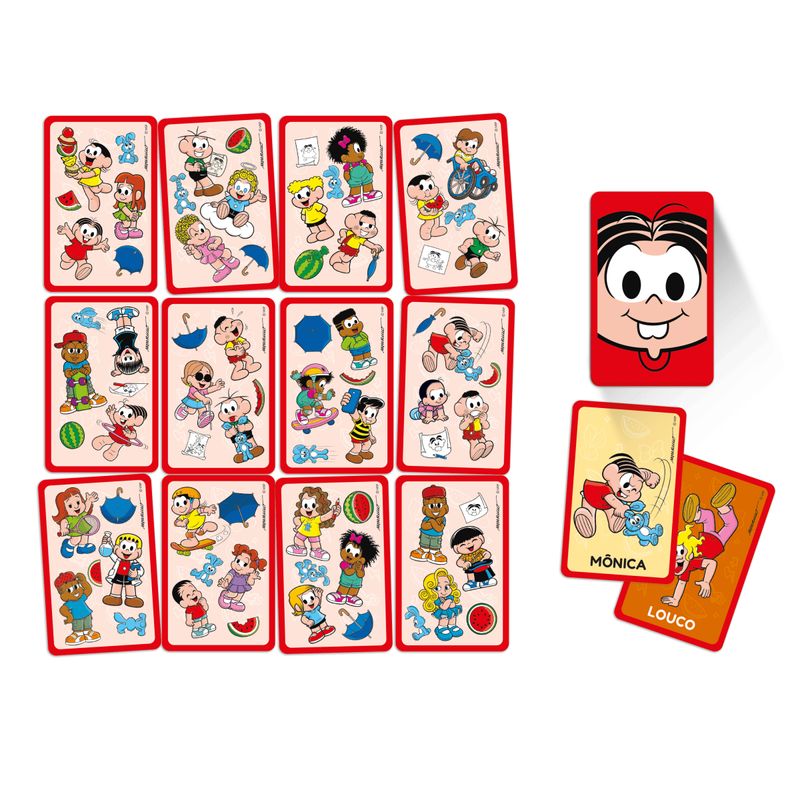 Nesse jogo, o desafio é manter os olhos atentos e não se distrair com tanta fofura espalhada pelas cartas. A cada Carta de Personagem revelada, é preciso exercitar a rapidez para localizar a Mônica e sua turma do Bairro do Limoeiro no grande universo de imagens das Cartas de Tabuleiro. E atenção quando o Louco aparecer embaralhando tudo só para te confundir.