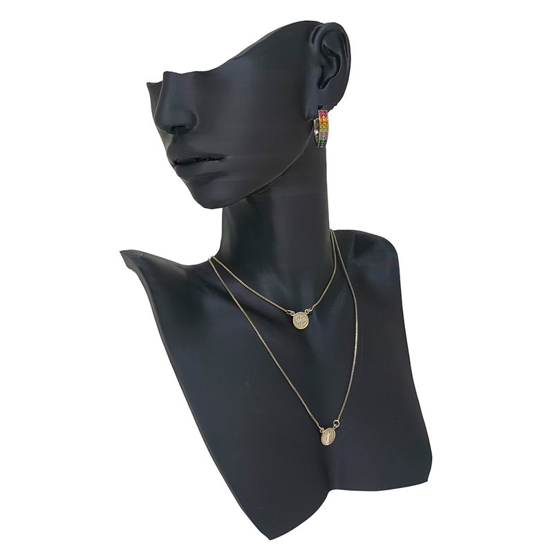 Palavras-chave para busca: expositor de joias, busto para colar, busto para brincos, suporte para gargantilhas, display para vitrine, organizador de joias, mostruário de joias, suporte para colares e brincos, busto preto para joias, expositor profissional.