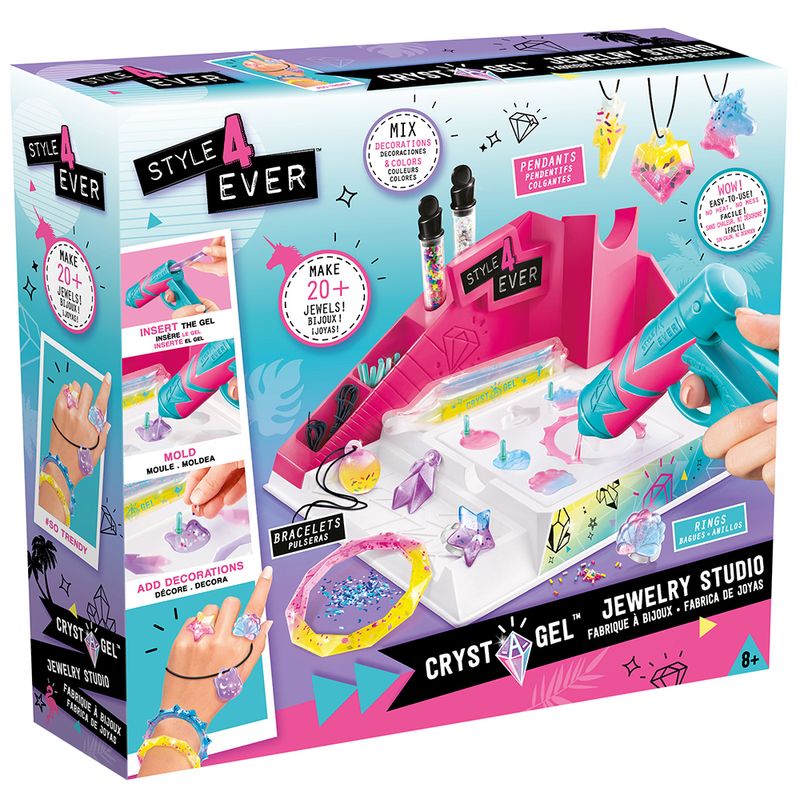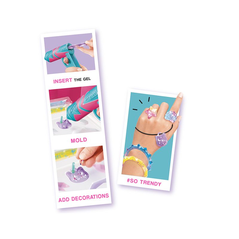 Use sua imaginação para criar mais de 20 joias com a FUN - Fábrica de pulseiras cristal gel. Sua estrutura comporta uma placa com 6 moldes, pistola, 2 ampolas, 1 cordão, 2 anéis, 6 sachês de brilho para decorar, 6 sachês de cristal gel. Misture o gel, insira na pistola, aplique no molde e decore com brilhos, glitter e cores. Espere secar e pronto! Sua pulseira, anel ou colar já tem um lindo pingente. Recomendação: 8+