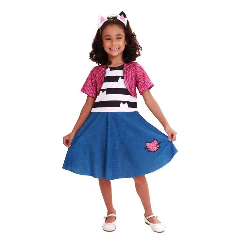 fantasia A Casa Magica da Gabby tamanho g da novabrink chegou para a diversão, com vestido estampado, tiara de cabelo e muitos detalhes coloridos, essa fantasia é licenciada e perfeita para crianças que amam aventuras com gatos mágicos, disponível no tamanho G (9 a 12 anos) para pequenas fãs da série mais fofa.