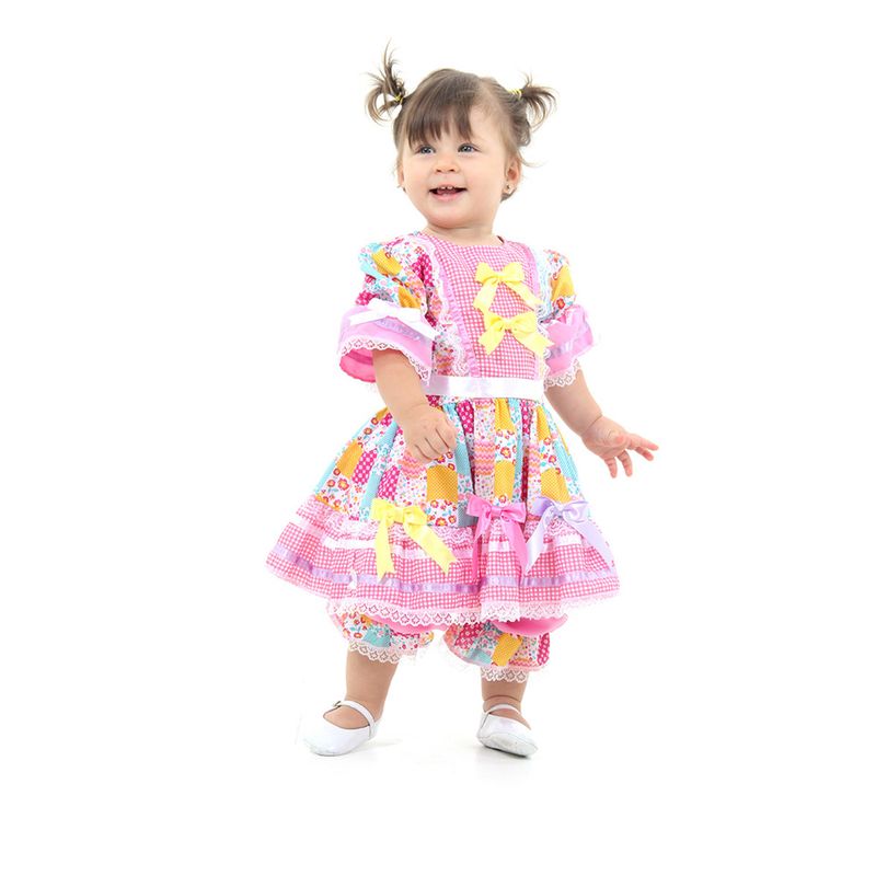 FANTASIASFANTASIA INFANTILFANTASIA JUNINAFantasia - Festa Junina - Bebê com Culote - Caipira - Rosa - Sulamericana