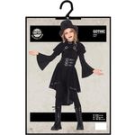 Revele um estilo de elegância sombria e misteriosa com a nossa Fantasia Gótica Infantil! Perfeita para meninas que preferem um visual moderno e cheio de atitude para o Halloween, esta túnica é uma peça única que se destaca em qualquer festa temática ou evento. Com um design arrojado, a fantasia apresenta um corte com barra assimétrica e mangas boca-de-sino dramáticas. O grande diferencial está nos acabamentos: um cinto triplo com fivelas metálicas que marca a cintura e uma gola choker, também com fivela, que conferem um autêntico toque gótico à peça. É a escolha ideal para criar uma personagem de bruxa moderna, caçadora estilosa ou nobre gótica.