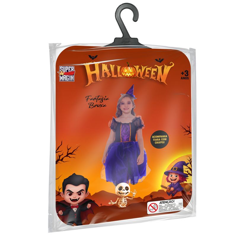 Fantasia Bruxa Roxa tamanho p da novabrink, lance feitiços de alegria neste Halloween, com vestido e tiara com chapéu, essa fantasia é perfeita para crianças a partir de 3 anos que adoram um toque de magia e cor, disponível nos tamanhos P (veste de 3 a 5 anos), a diversão será encantadora!