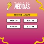 Tamanho PP - Veste Numeração de roupa 36 a 38. P - Veste Numeração de roupa 38 a 40. M - Veste Numeração de roupa 42 a 44. G - Veste Numeração de roupa 46 a 48. Ficou na dúvida de qual tamanho escolher ? Sempre indicamos a escolha de um tamanho maior pois é mais fácil fazer um ajuste, caso necessário.