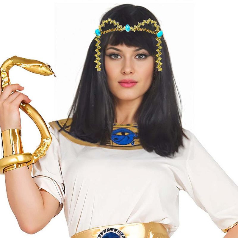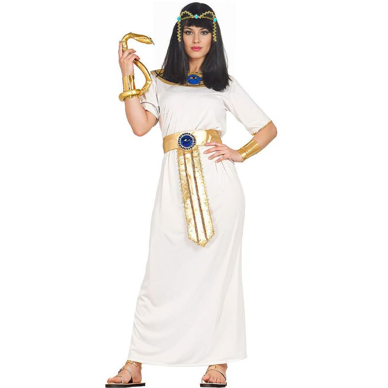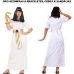 Sinta-se como a rainha do Egito com a Fantasia Cleópatra Adulta. Este conjunto é a escolha perfeita para quem quer um visual elegante e majestoso no Halloween, festas temáticas ou eventos de cosplay. O vestido é longo e branco, com um cinto e um colarinho de material dourado com detalhes em tecido azul, que dão o toque de realeza ao traje. O vestido é leve e confortável, proporcionando liberdade de movimento para que você possa aproveitar a noite como a rainha que você é! Uma fantasia que une beleza, história e conforto para uma celebração inesquecível.Vestido branco longo e elegante Colarinho e cinto dourados e azuis Ideal para festas temáticas, Halloween e cosplay Visual luxuoso e majestoso OBS: Não acompanha Cobra, Braceletes e sandálias.