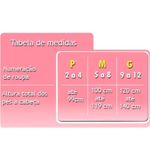 M - Numeração de roupa 5 a 8. Crianças entre 100 a 119 cm de altura total dos pés à cabeça.