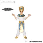 Transforme o pequeno em um majestoso faraó com esta incrível fantasia infantil! O traje branco com detalhes dourados inclui chapéu, camisa, colarinho, cinto e calça, garantindo um visual autêntico e encantador. Confeccionada em 100% poliéster (exceto adornos), a fantasia é leve, confortável e ideal para festas temáticas, Carnaval ou apresentações escolares. Um traje de alta qualidade que combina estilo e praticidade para momentos inesquecíveis.