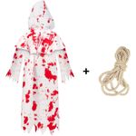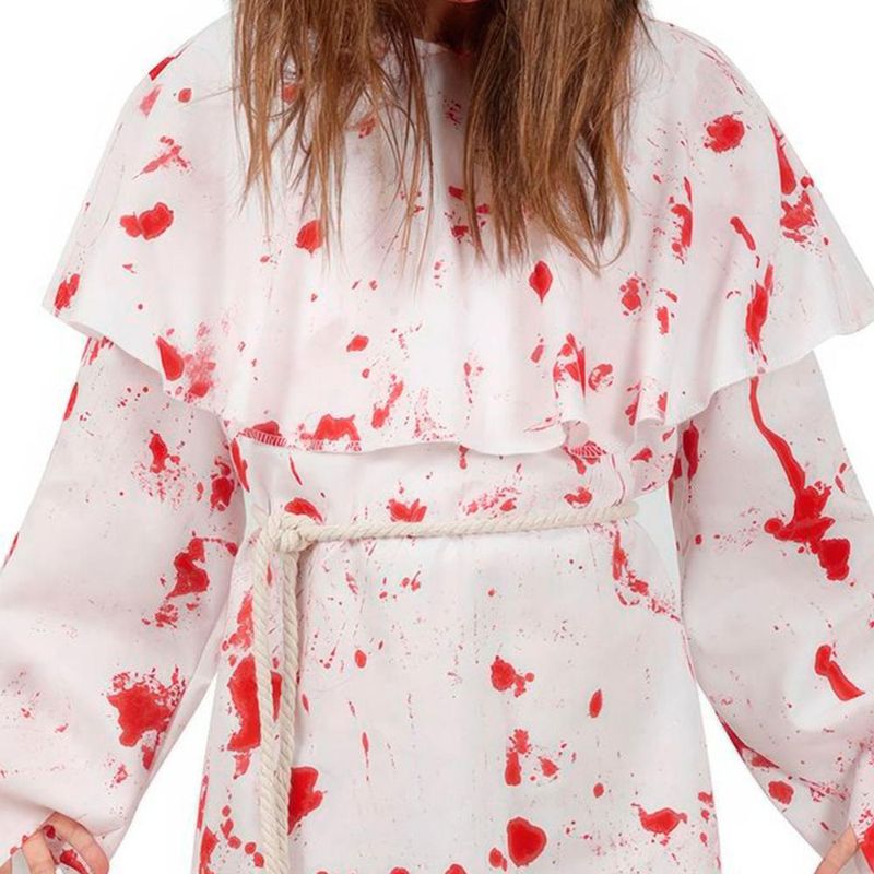 Prepare a sua pequena para o Halloween com esta Fantasia de Freira ou Monge Sangrento Infantil! O conjunto é completo e ideal para festas, eventos de terror e brincadeiras. A fantasia inclui uma túnica branca com capuz e gola fixos, com estampa de sangue falso com efeito realista, criando um visual aterrorizante e autêntico. O fechamento prático em velcro facilita na hora de vestir e tirar a roupa, garantindo que a criança possa se divertir com liberdade. Acompanha também um cinto de corda com 150 centímetros de comprimento, que complementa o visual e pode ser ajustado para um caimento perfeito. Uma fantasia que combina conforto e um visual assustador para uma celebração inesquecível! Túnica com capuz e gola fixos Estampa de sangue com efeito realista Cinto de corda com 150cm de comprimento Fechamento prático em velcro Ideal para Halloween, festas e carnaval OBS: Não acompanha sapatos.