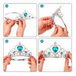 A fantasia conta com uma capa longa transparente com estampa de flocos de neve, que acompanha o comprimento da saia e balança com o vento como se estivesse em meio a uma tempestade congelante! Para completar a fantasia acompanha também uma coroa e varinha prateada com pedras azuis e uma linda trança que se prende com pico de pato no cabelo da criança