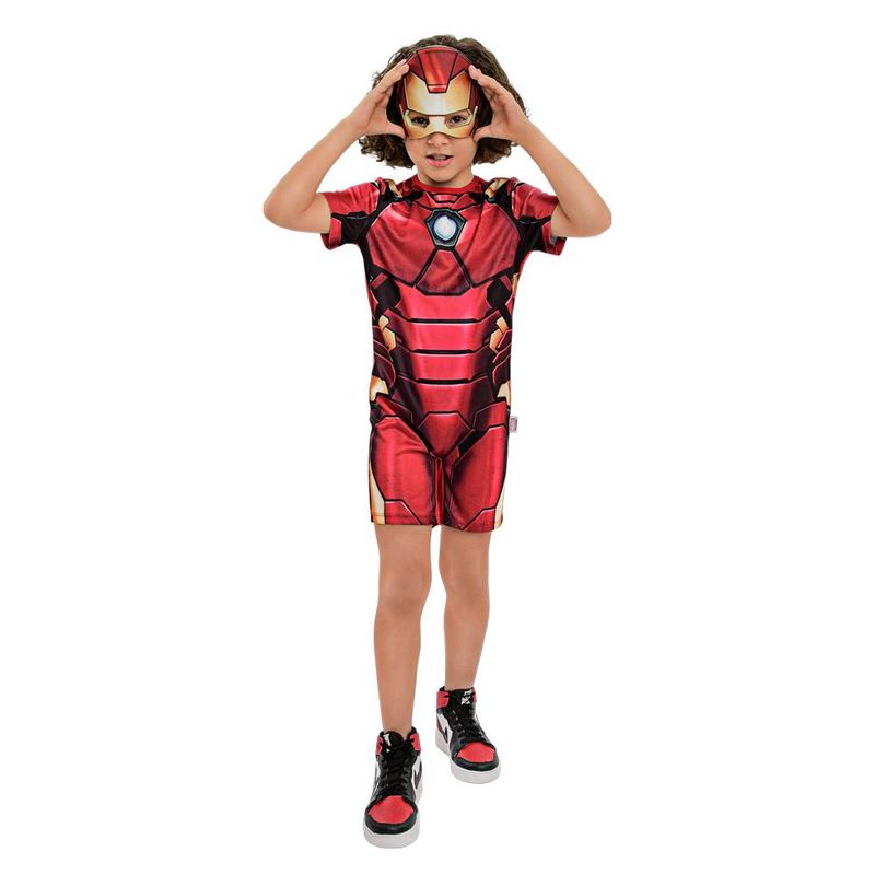 A diversão é garantida para a criançada com a Fantasia Pop Avengers Homem de Ferro. A fantasia da Regina Festas é igualzinha à roupa do seu vingador favorito! A fantasia é composta por um macacão curto e máscara. Disponível em três tamanhos diferentes: P, M e G, a fantasia é confeccionada em helanca e a máscara em espuma.