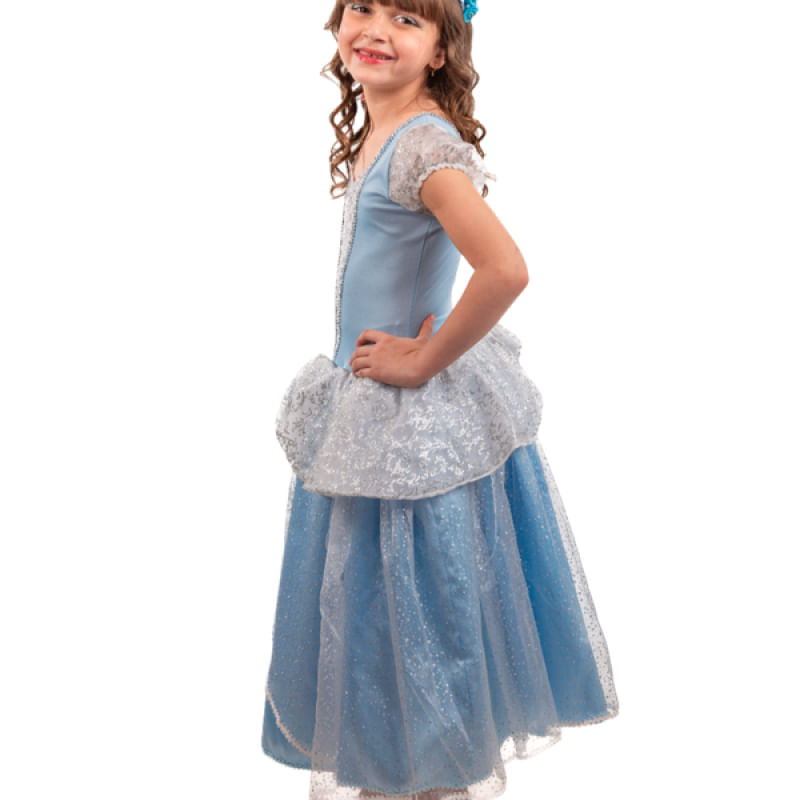 Vestido luxuoso com tema da Cinderela, perfeito para transformar sua pequena em uma princesa.